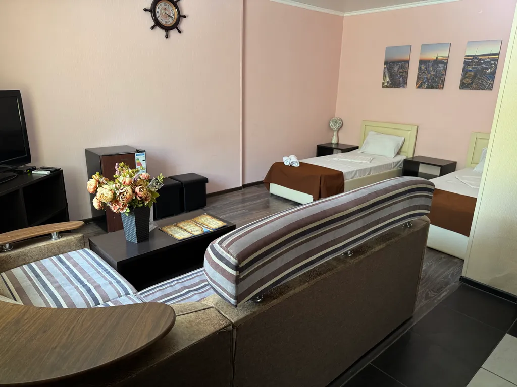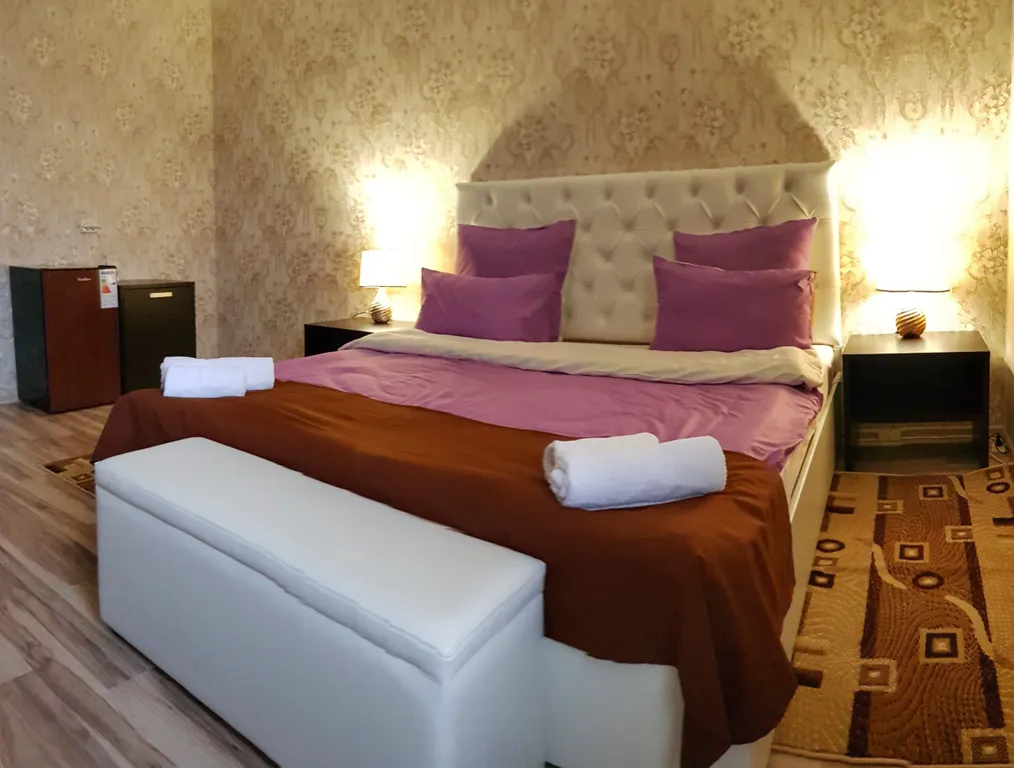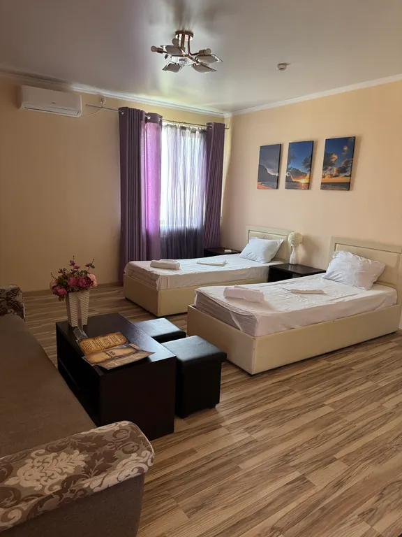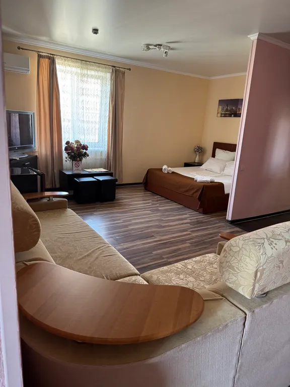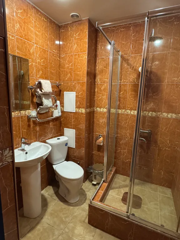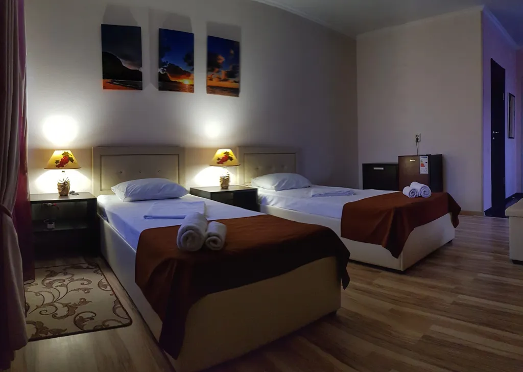 Теперь о том, что мне не понравилось: очень плохой слив в душе! Наполняется моментально и чуть не переливается за один приём душа. Спустя минут 30 только уходит вода. Как только я вошла в гостиницу, с меня сразу потребовали оплатить полную стоимость, когда я ещё не видела номера, и персонал был не в курсе о предоплате за бронирование. Персонал очень не приветлив, хотя гостиница пустая, они не перегружены задачами. Еда в гостинице очень дорогая! Выдают за ресторанную, а это обычная разогретая еда, приготовленная непонятно когда..... На 4- балла за такую стоимость. Только что подача красивая. Мы приехали в 9м часу, выбирать уже из доставок не стали, очень устали. Приехали с 2мя детьми - организовано только было 2 спальных места, хотя при бронировании все данные указываются. Я спускалась просила, чтоб организовали ещё одно спальное место- дали только постельное бельё. Я застелила, я не ленивый человек, просто после сложной 13тичасовой дороги хочется упасть.