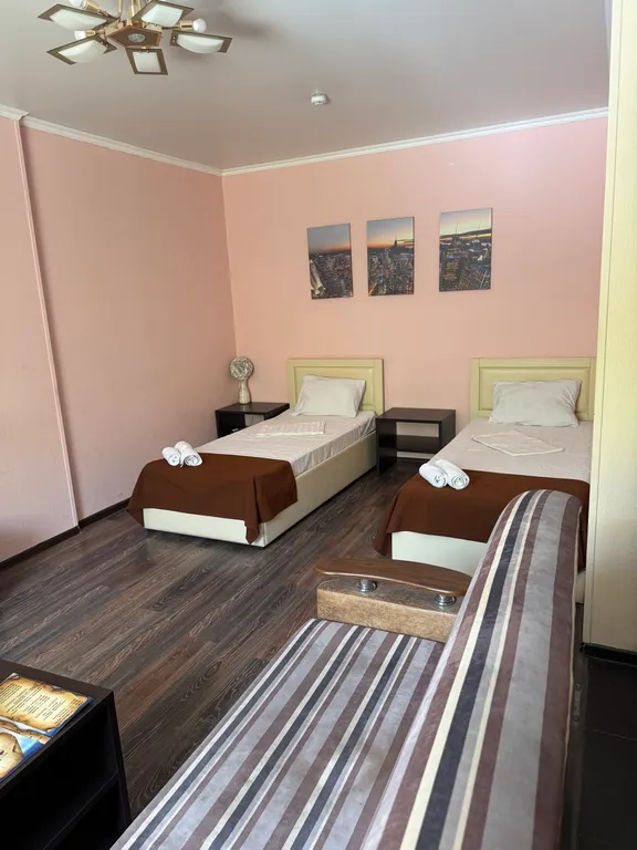 Гостиница очень удобно расположена рядом с м4. Расположена в частном секторе, дороги не слышно, очень тихо. Номера чистые, современные, бельё помененные. После дороги выспались. За это спасибо! В стоимость включён завтрак, очень, правда, скудный: каша, вафля венская, растворимый кофе. Если хотите яичницу, то заплатите ещё +350р, и надо предупреждать об этом с вечера, что стало для нас неожиданностью.